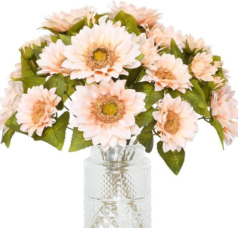Ramo de girasoles artificiales, girasol Vintage, otoño, flor blanca, 9 cabezas florales, para el hogar Manojo, boda, fiesta, mesa, jarrón, decoración