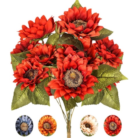 Ramo de girasoles artificiales, flor de Otoño de girasol Vintage para decoración, ramo de flores de imitación de 9 cabezas florales para decoración del hogar
