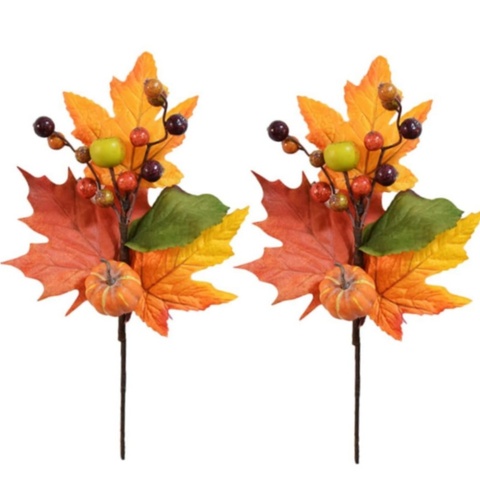 Hojas de arce artificiales Berry Fall Picks con calabaza girasol conos de pino para Acción de Gracias Festival de la cosecha Halloween Farmhouse
