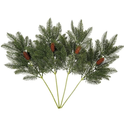 Ramas de pino artificial con cono de pino, plantas verdes, hojas, manualidades de púas para DIY guirnalda, adorno de Navidad, jardín de casa